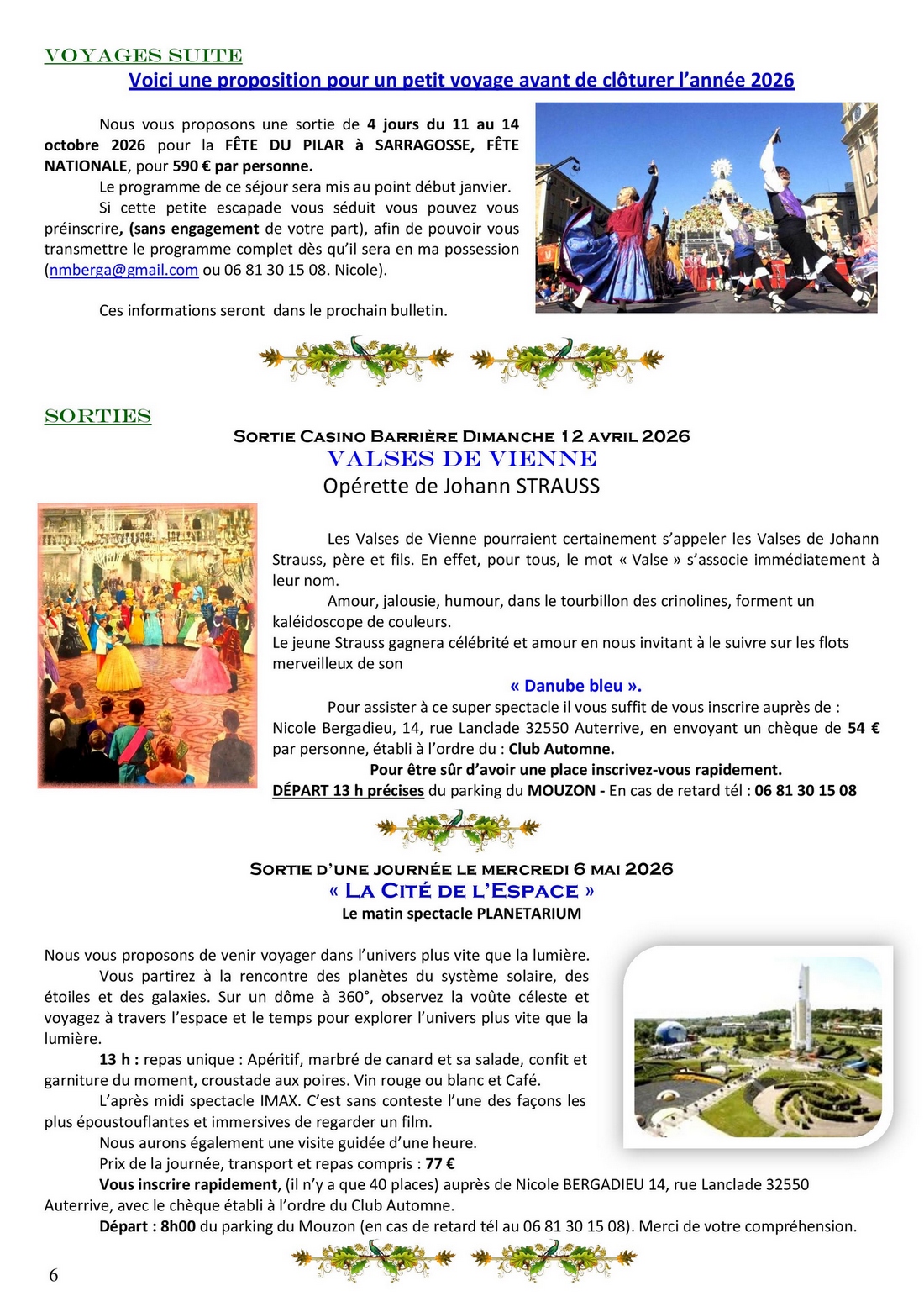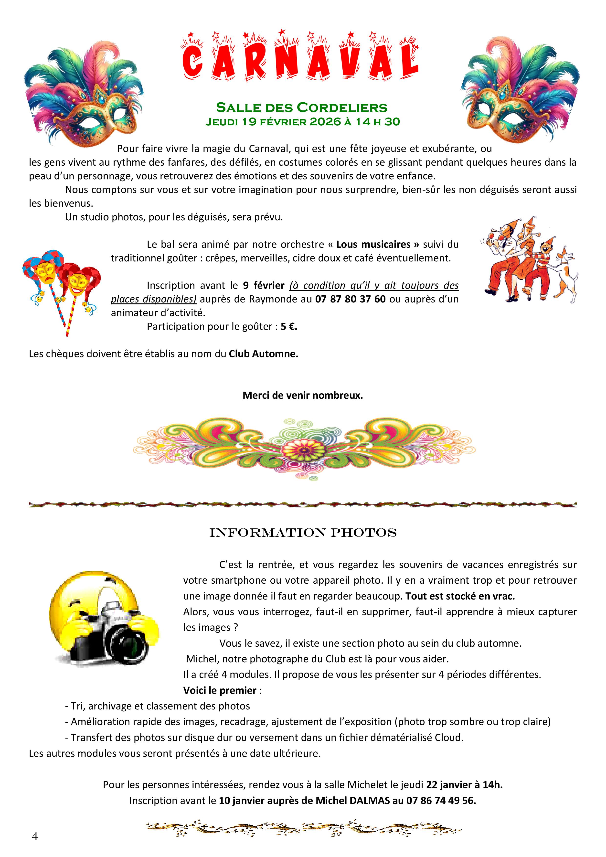 Venez nous rejoindre, vous trouverez des activités pour tous les jours de la semaine dans un climat de convivialité et de bonne humeur.